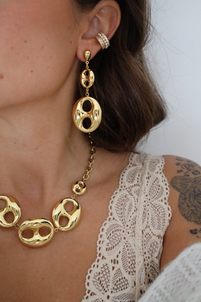 Ces jolies boucles d'oreilles sont réalisées en acier inoxydable doré et mesurent 70mm.