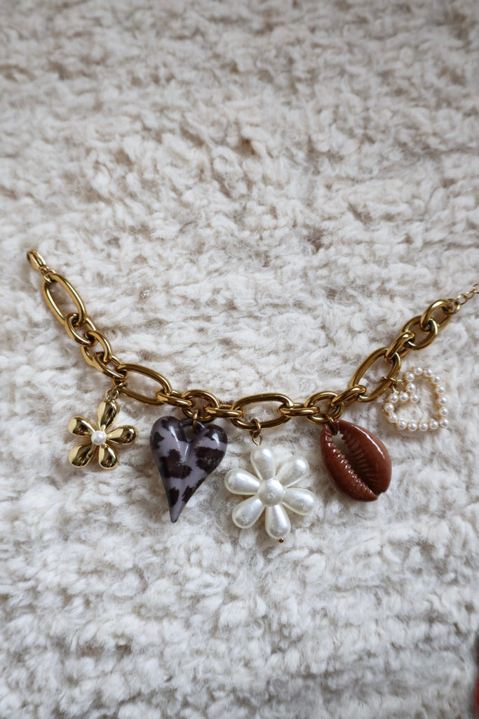 Ce beau bracelet avec ses charm's est réglable et réalisé en acier inoxydable doré.