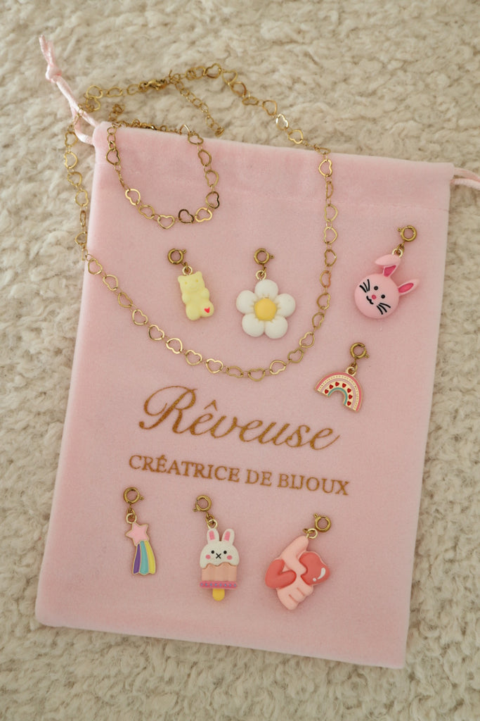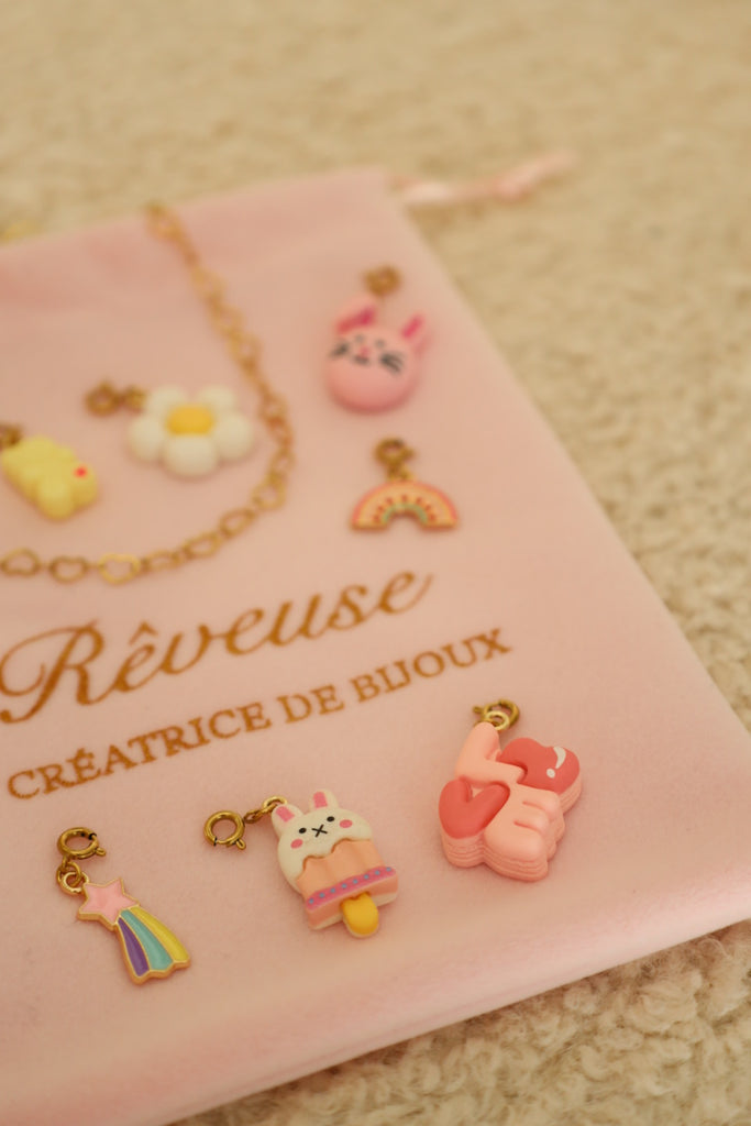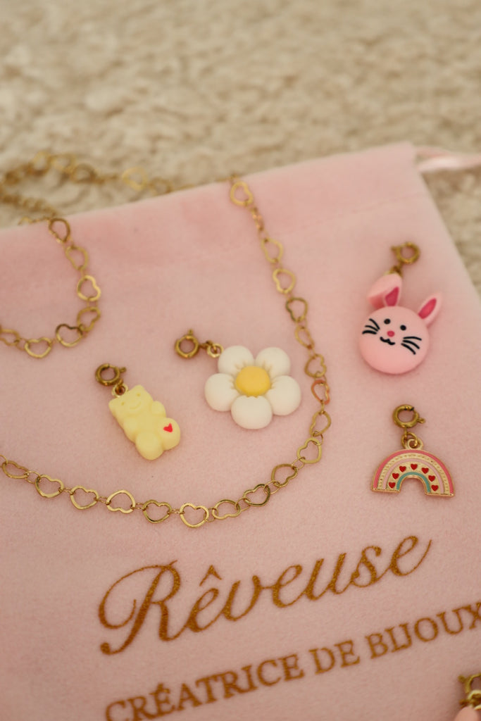 Chaque charm est équipé d’un petit mousqueton, ce qui permet à votre enfant de clipser, déclipser et changer ses charm’s en toute autonomie, selon ses envies du moment !
