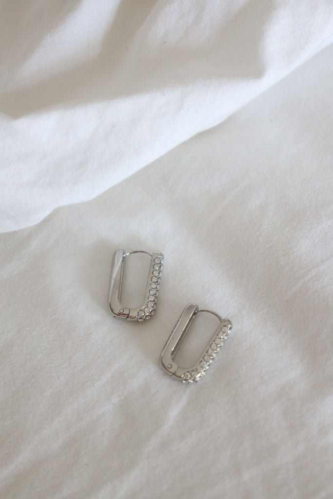 Ces jolies boucles d'oreilles serties de pierres de zircons blancs sont réalisées en acier inoxydable.