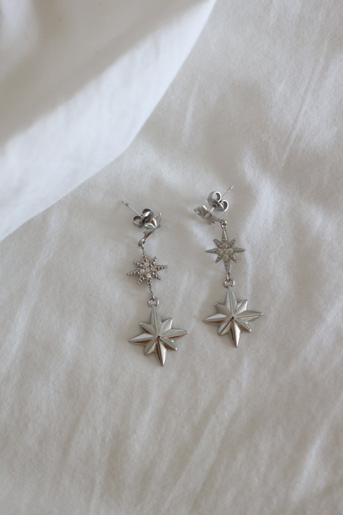Ces jolies boucles d'oreilles pendantes de 50mm avec leurs étoiles serties de pierres de zircons blancs sont réalisées en acier inoxydable doré.
