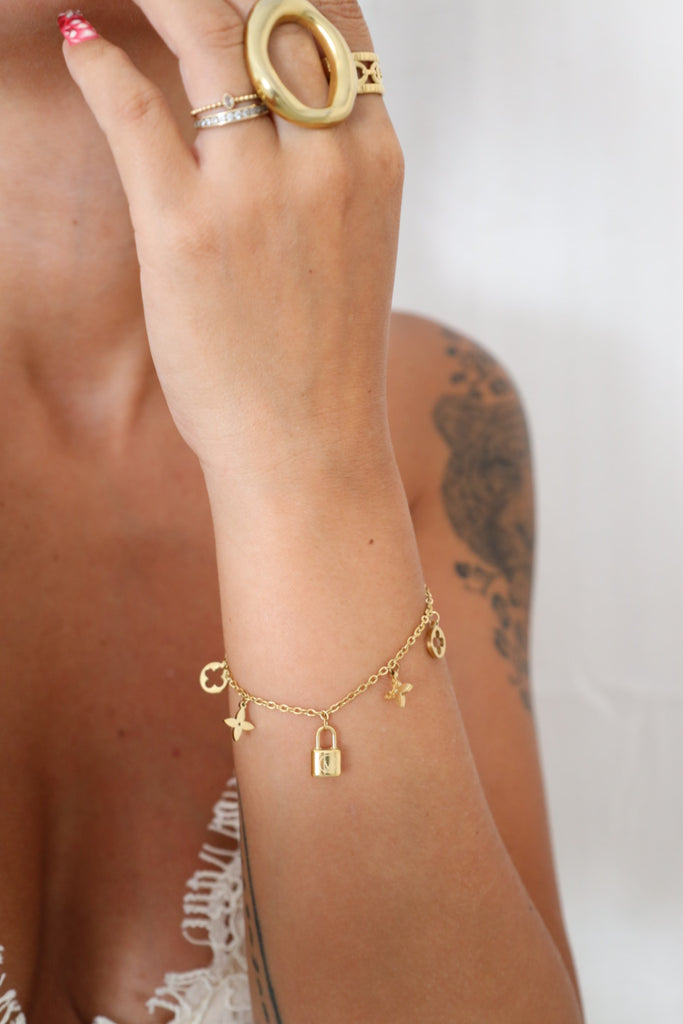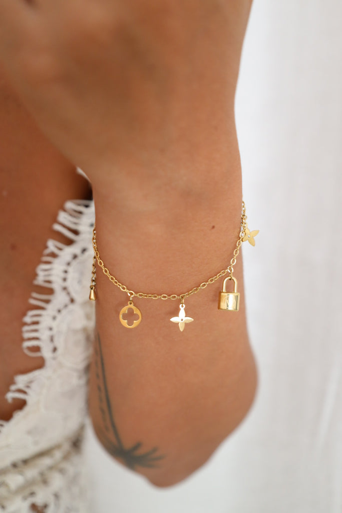 Ce beau bracelet réglable est réalisé en acier inoxydable doré.