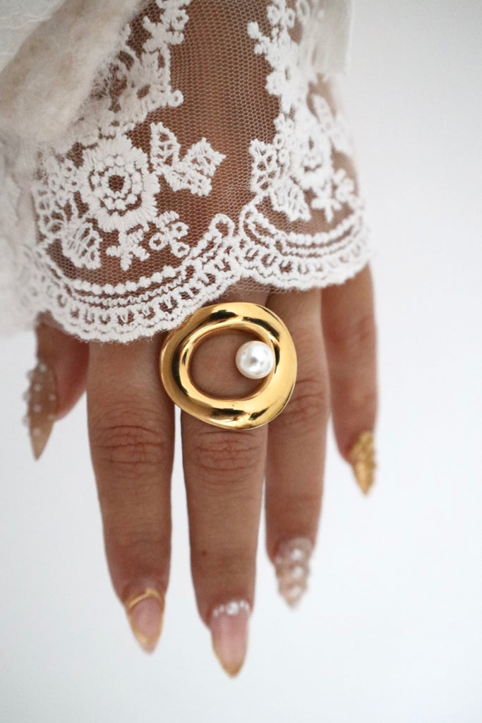 Cette belle bague est réglable et réalisée en acier inoxydable doré.